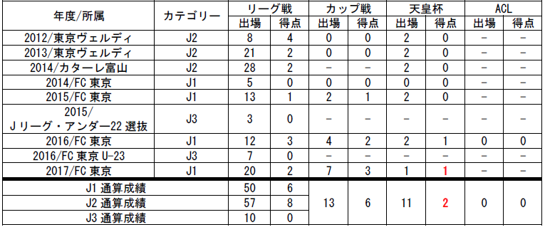 【5/14(月)修正】2017シーズンの天皇杯の得点が誤っておりましたので、お詫びして訂正いたします。